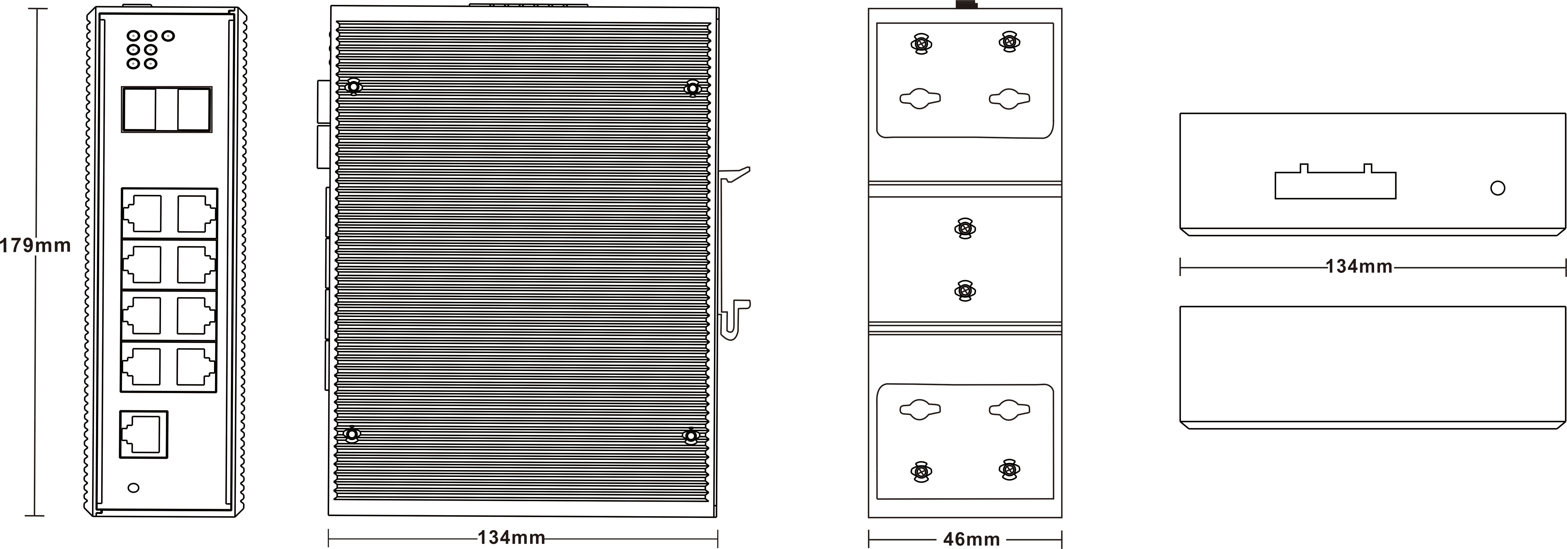 外殼:金屬材質 安裝:DIN 卡軌式,壁掛式安裝 重量:0.36Kg 尺寸 :118x 86x 39mm (長 x 寬 x 高) |