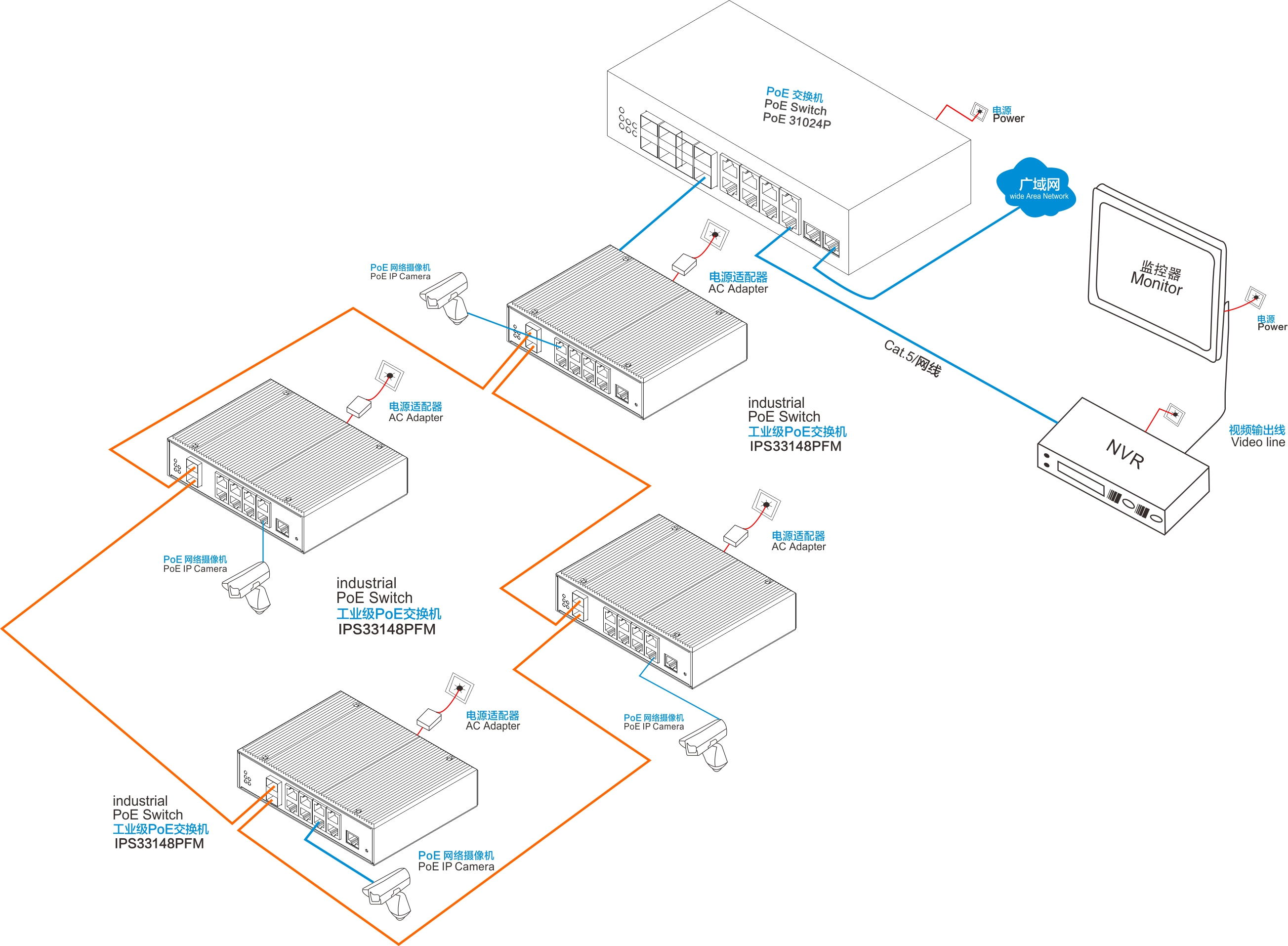 24V/1A,適用于非POE工業交換機產品系列。 |