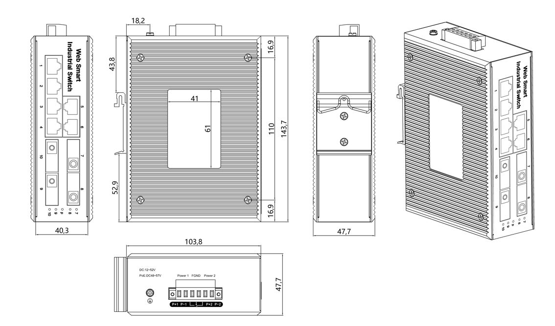 外殼:IP40防護等級,金屬外殼 散熱方式:自然冷卻,無風扇 重量 :0.64Kg 尺寸 :143.7 x 104 x 47.7mm (長 x 寬 x 高) |