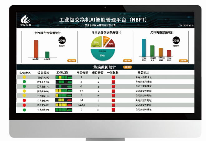 茅草屋的預算蓋出豪華別墅的效果,真正的低成本的前提下,實現安防傳輸的可靠性,可視化,可控性,并適用于局域網技術為主的監控場景,NBPT AI智能管理平臺有別于傳統SNMP,可實現前端一層管理工業交換機的狀態可視化,端口可視化,終端可視化,光纖鏈路可視化,流量寬帶可視化。