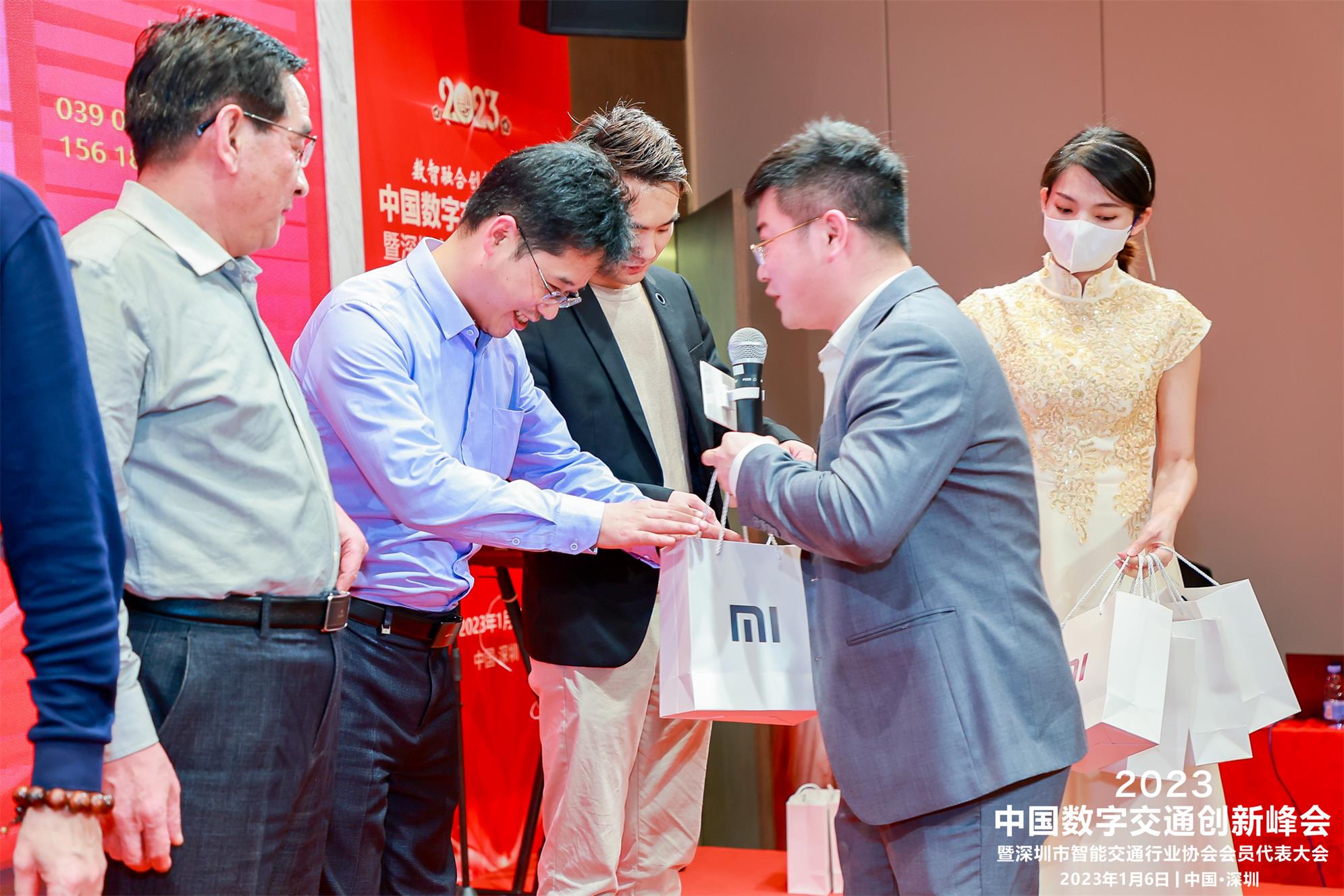 ▲深圳市智能交通行業協會專家委常務副主任、天地智能交通研究院院長鄧文杰為獲獎企業頒獎并合影