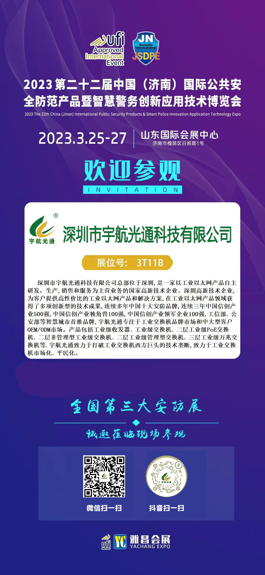 一年之計在于春,隨著天氣回暖,各地安防展會活動紛至沓來!2023年宇航工業交換機整裝待發,邁著更堅定的步伐再度襲來。同時,宇航人將以更加飽滿的精神狀態現身全國各地的展會和渠道會中,也將帶來適應市場適應各大行業的新產品。屆時,歡迎各位朋友蒞臨參觀指導~