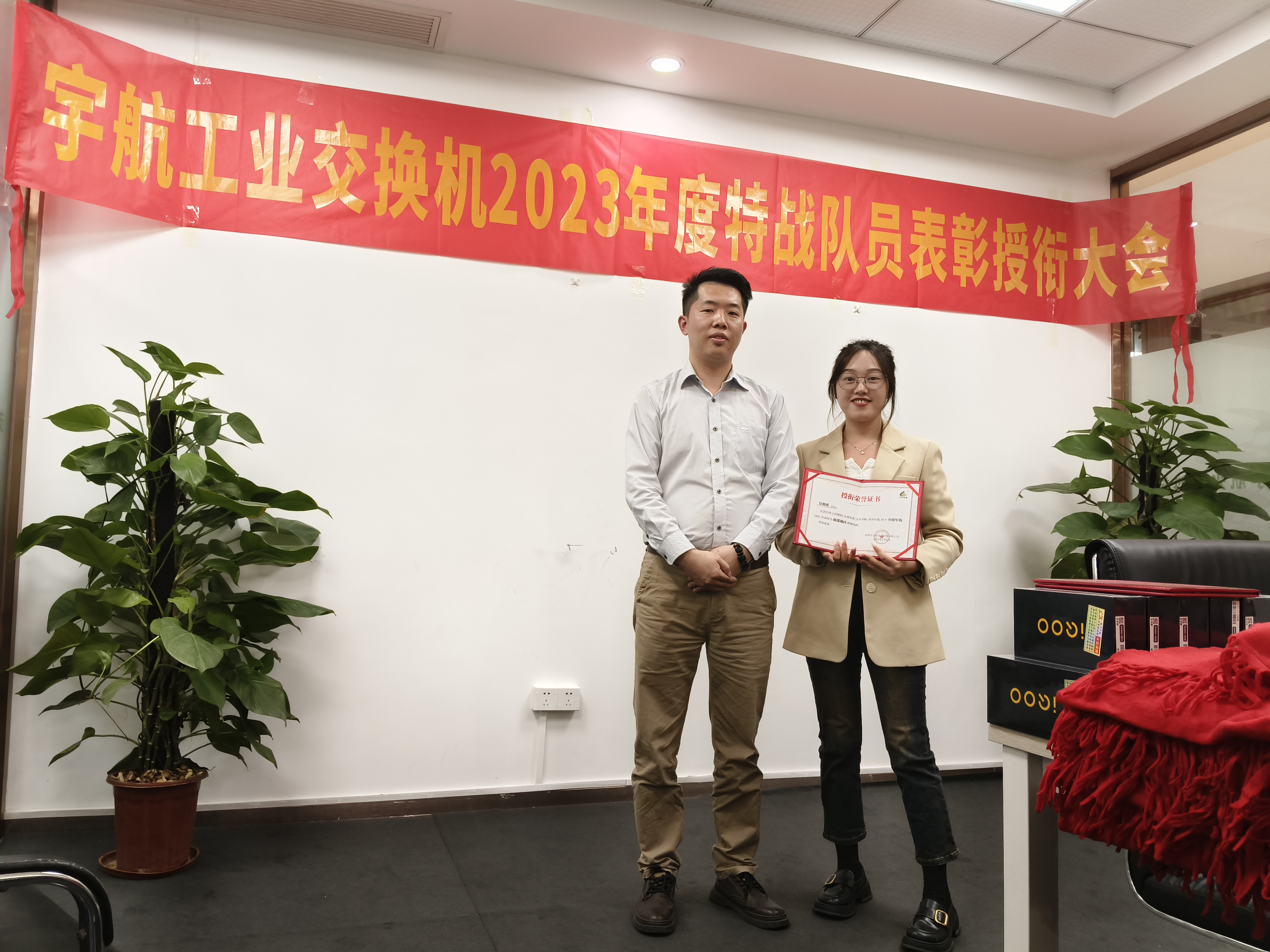 宇航工業交換機余俊云在2023年工作期間,認真負責、無私奉獻、戰績卓越,授予“大將軍”銜,同時,任命為西北戰區銷售總監。