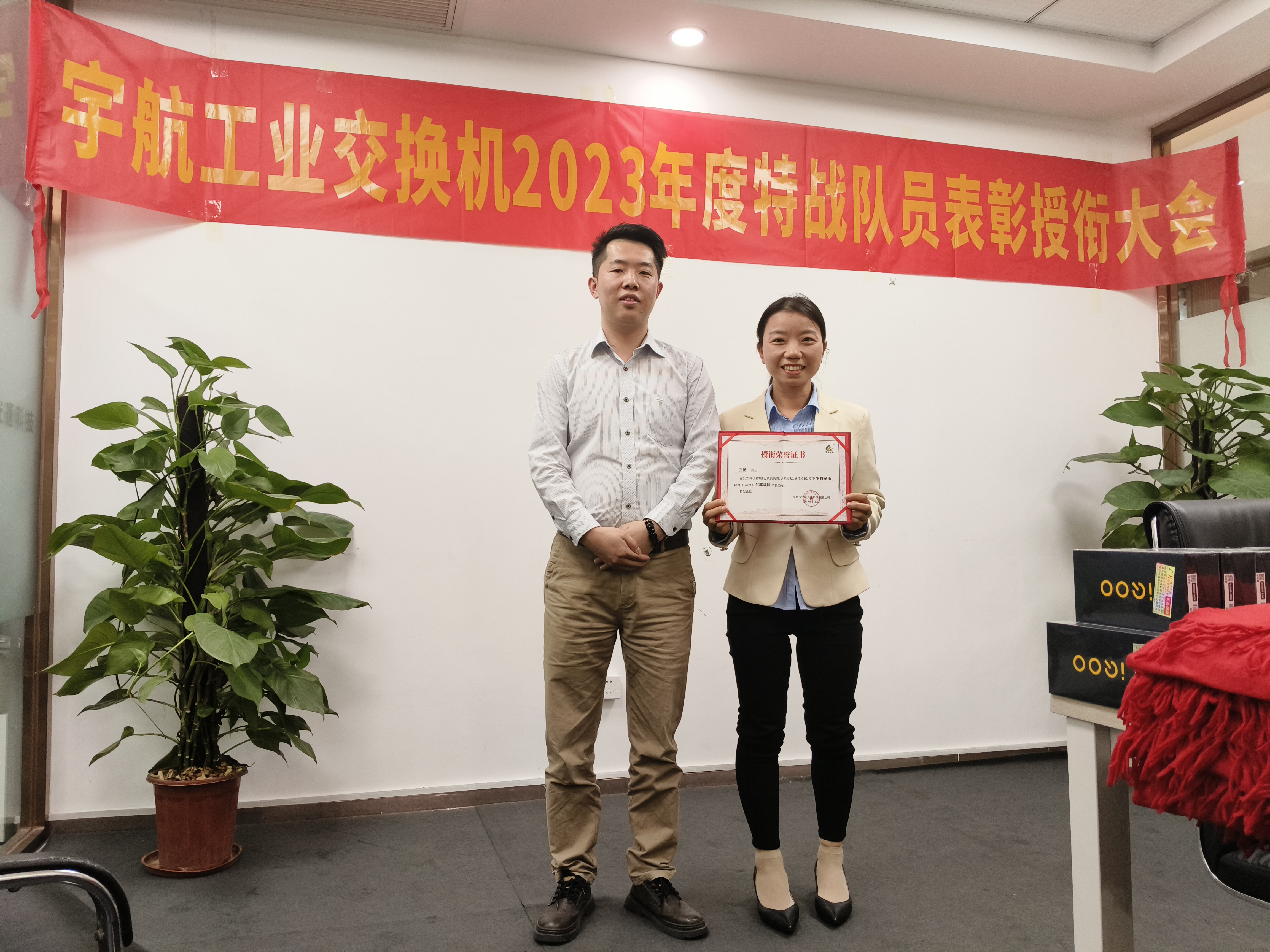 宇航工業交換機王艷在2023年工作期間,憑借著對市場的敏銳洞察力和不懈的努力,取得了卓越的銷售業績,授予“少將軍”銜,同時,任命為東部戰區銷售經理。