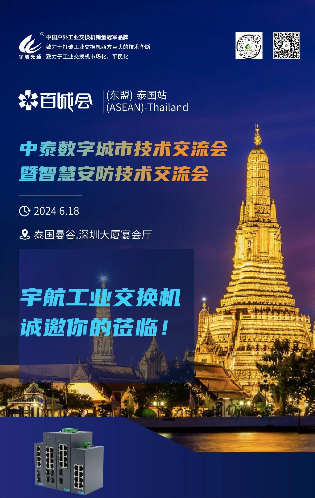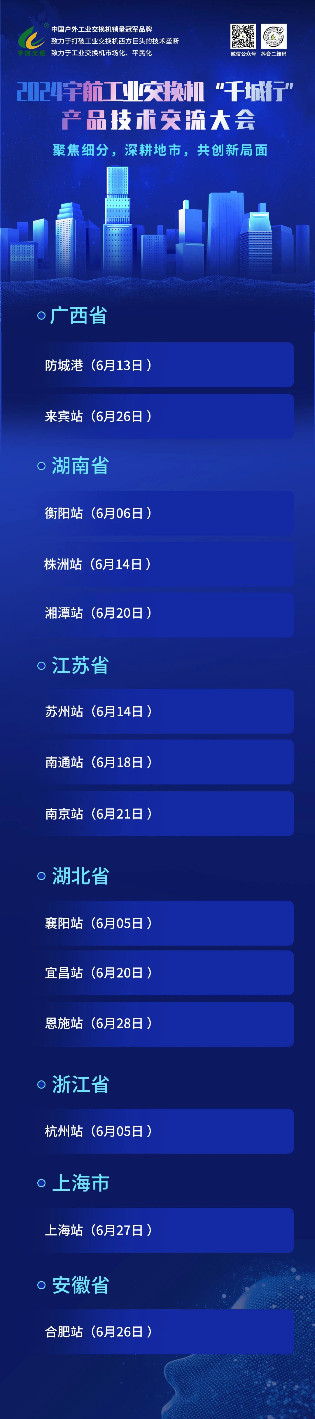 宇航,作為全國(guó)產(chǎn)工業(yè)交換機(jī)發(fā)起單位,隨著國(guó)產(chǎn)工業(yè)交換機(jī)的不斷推廣和普及,光通信行業(yè)正在迎來新的機(jī)遇。為了與各位友商及客戶朋友深入交流,6月份,宇航工業(yè)交換機(jī)將分別在浙江杭州、湖北襄陽(yáng)、宜昌、恩施、江蘇蘇州、南通和南京、湖南衡陽(yáng)、株洲和湘潭、廣西防城港和來賓、安徽合肥、上海以及泰國(guó)等國(guó)內(nèi)外多個(gè)城市舉辦2024宇航工業(yè)交換機(jī)千城行產(chǎn)品技術(shù)交流大會(huì);同時(shí),在武漢、廣州、深圳等城市參加行業(yè)各大展會(huì)。
