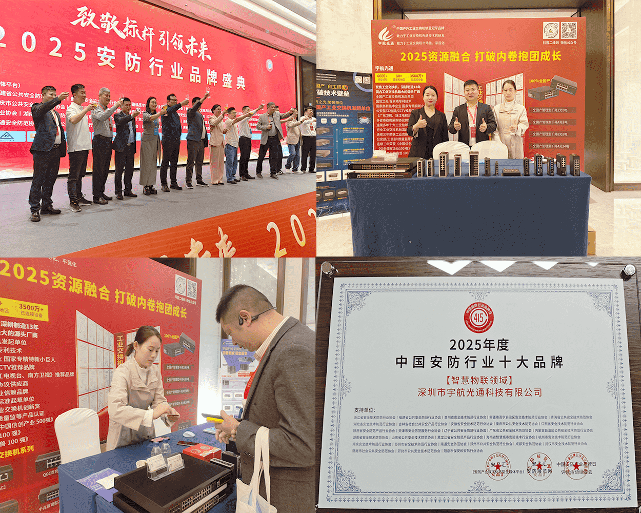 在杭州君尚云酈酒店舉辦的2025信創(chuàng)產(chǎn)品千城行技術(shù)交流大會(huì)期間,宇航工業(yè)交換機(jī)聯(lián)席總經(jīng)理劉偉成應(yīng)邀出席了同期舉行的2025中國安防行業(yè)品牌盛典。會(huì)上,劉總代表公司榮膺"2025年度中國安防行業(yè)優(yōu)秀解決方案服務(wù)商"和"2025安防行業(yè)十大品牌"雙項(xiàng)殊榮。這些權(quán)威認(rèn)可不僅是對(duì)宇航工業(yè)交換機(jī)產(chǎn)品實(shí)力與服務(wù)品質(zhì)的高度肯定,也進(jìn)一步彰顯了宇航科技在安防領(lǐng)域的專業(yè)影響力和市場(chǎng)地位,標(biāo)志著宇航品牌已成為國產(chǎn)工業(yè)通信設(shè)備在安防行業(yè)的領(lǐng)軍力量。