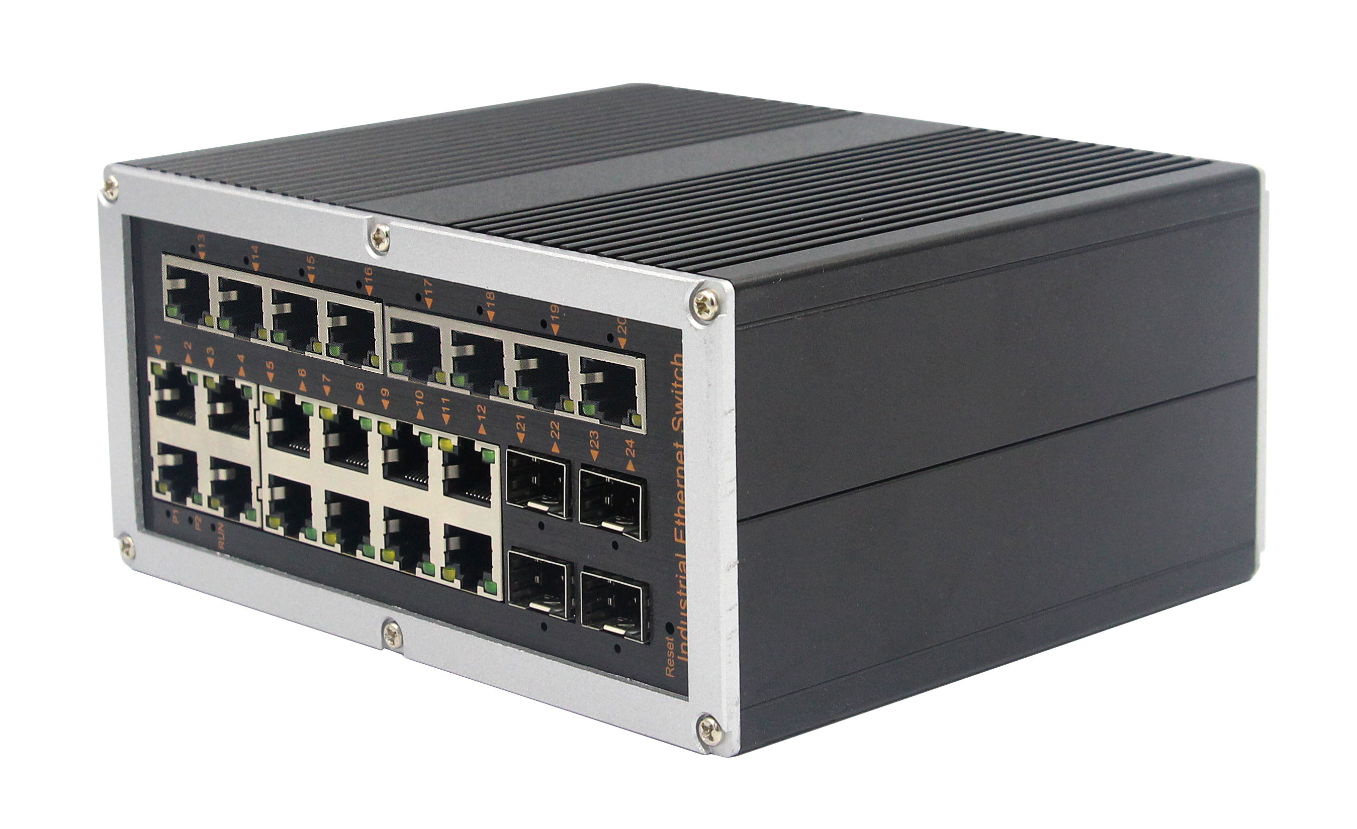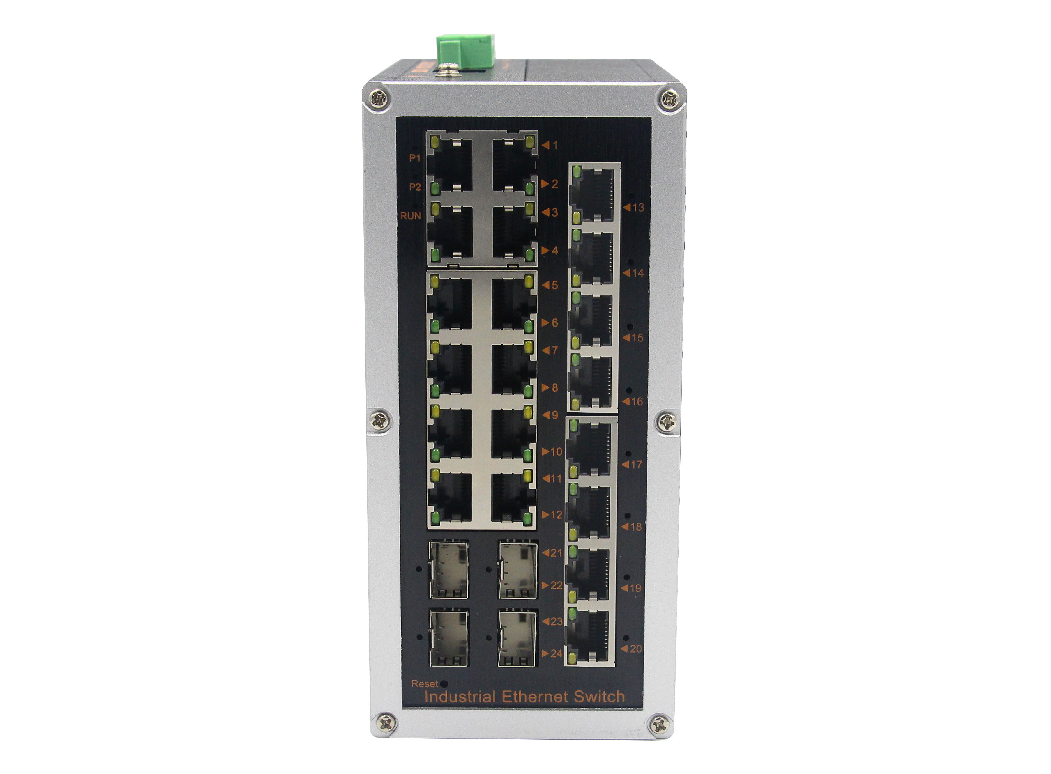網管型千兆4光20電系列工業以太網交換機,產品符合FCC、CE、ROHS標準。支持4個千兆光口和20個千兆電口,支持一路console口;支持工業現場所需的以太網二層協議,保證通信網絡的穩定性;該系列交換機采用低功耗、無風扇設計,確保無噪聲干擾,同時支持-40~85℃工作溫度和良好的EMC電磁兼容性能,保證在惡劣的工業環境中保持穩定的工作,為工廠自動化,智能交通,視頻監控等工業應用領域組建快速穩定的網絡終端接入網絡提供安全可靠的解決方案。護等級的外殼及 LED 指示燈,使之成為一個即插即用的工業級設備,為用戶的以太網設備聯網提供可靠、便捷的解決方案。