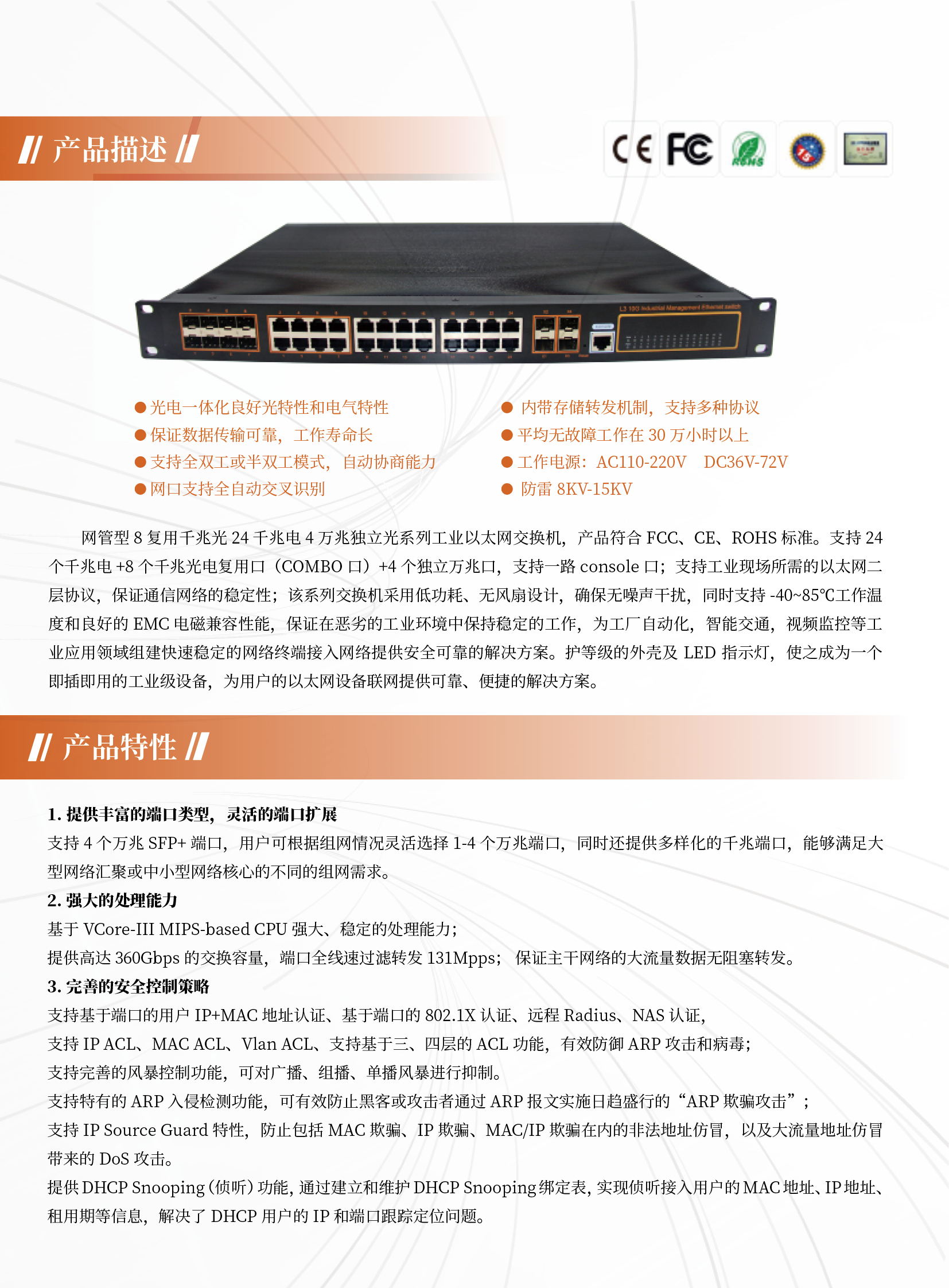 管理型千兆8光電復用16千兆電4萬兆獨立光