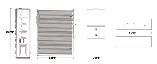 外殼:金屬材質(zhì) 安裝:DIN 卡軌式,壁掛式安裝 重量:0.36Kg 尺寸 :118 x 86 x 39mm (長 x 寬 x 高) |