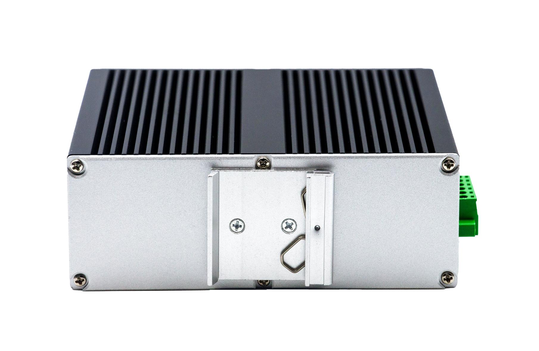 外殼:金屬材質 安裝:導軌式安裝 散熱方式:內置散熱片被動散熱,無風扇散熱,設計保證設備運轉的高可靠性 尺寸:143 x 125 x48mm 重量:<0.7Kg |