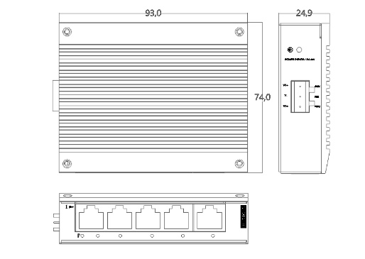 外殼:金屬材質(zhì) 安裝:DIN 卡軌式,壁掛式安裝 重量:0.2Kg 尺寸 :93 x 74 x 24.9mm(寬 x 深 x 高) |