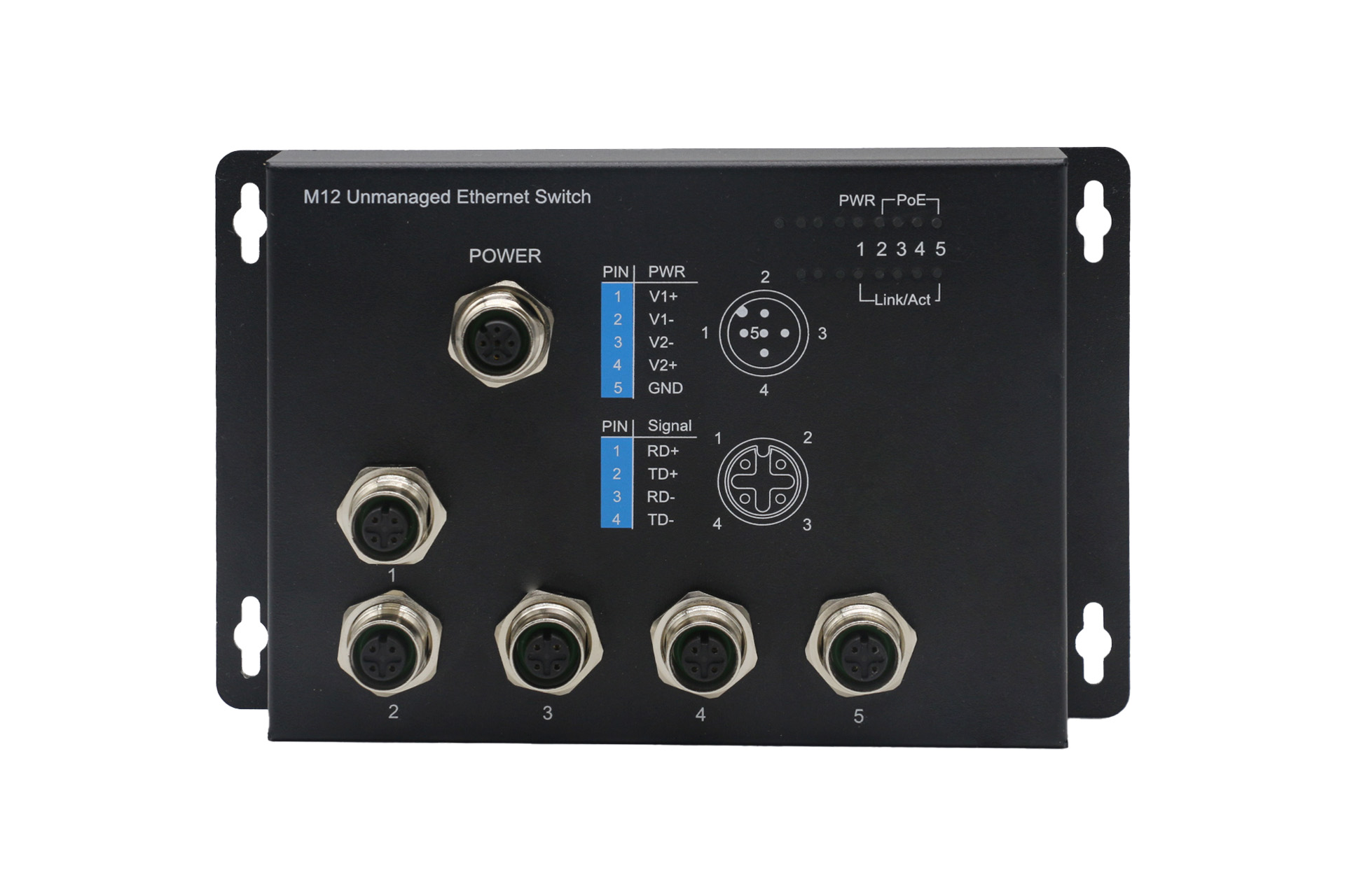 PRODUCT壁掛式5口百兆M12直插加固交換機